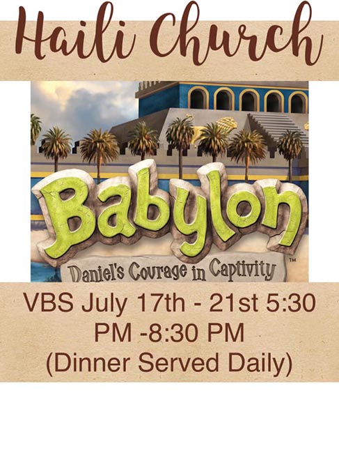 We are pleased to announce that after a three-year hiatus due to Covid, we just finished a week session of Vacation Bible School from July 17th - 22nd. The theme was "Babylon - Daniel's Courage in Captivity". The children learned that no matter the circumstances, when life changes, when we need help, when we are afraid, when we are lonely and when we are thankful, "God is with us!" The children loved the lessons, learning the memory verses, and doing crafts. Of course, the songs are always a hit as they learned that if they stand firm and trust in their one true god, that through it all, God is with us. Many of the children were new and learned how important God is in our lives. We also had high school students that came to volunteer to assist our volleyball girls with recreation.